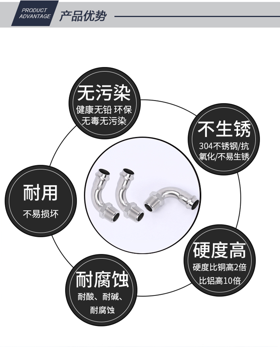對(duì)不銹鋼卡壓式管件進(jìn)行操作容易,不銹鋼卡壓式管件無需進(jìn)行復(fù)雜的焊接工作只需簡單安裝就行了,不銹鋼卡壓式管件的安裝所需要的時(shí)間和不銹鋼卡壓式管件的焊接所需要的時(shí)間要少很多倍,這也足以說明了使用不銹鋼卡壓式管件可以大大的提升效率。