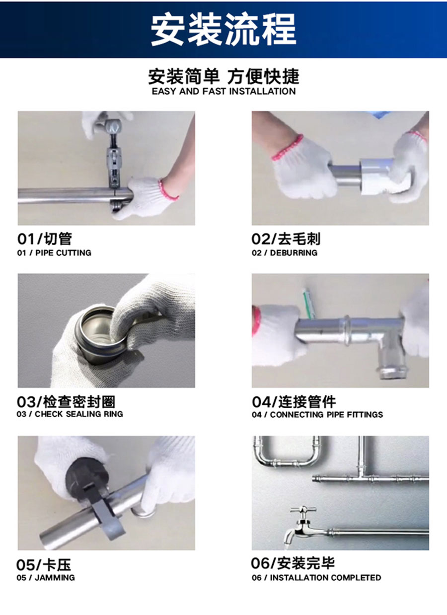 隨著工業(yè)技術(shù)的發(fā)展,薄壁不銹鋼管迅速占領(lǐng)了市場,取代了傳統(tǒng)的塑料水管成為新的飲用水不銹鋼管材。不銹鋼水管適用卡壓、環(huán)壓等多種連接方式,以卡壓不銹鋼管件為例。安裝卡壓式不銹鋼水管施工要領(lǐng)是什么呢?